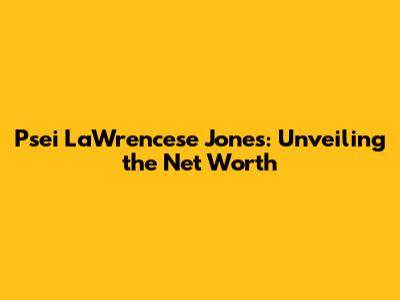 Psei LaWrencese Jones: Unveiling The Net Worth