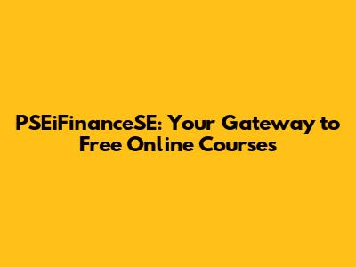 PSEiFinanceSE: Your Gateway To Free Online Courses