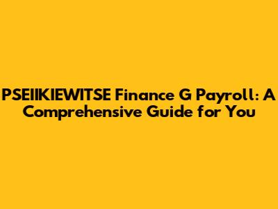 PSEIIKIEWITSE Finance G Payroll: Your Complete Guide