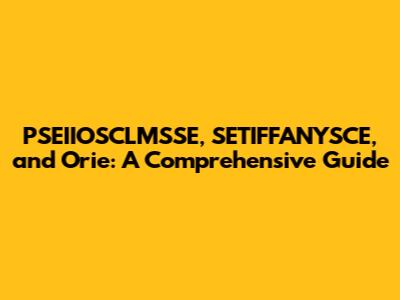 PSEIIOSCLMSSE, SETIFFANYSCE, And Orie: Guide