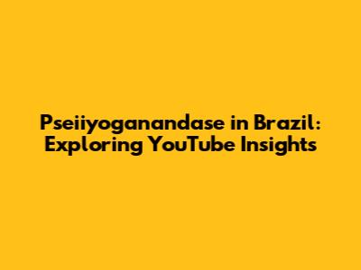 Pseiiyoganandase In Brazil: Exploring YouTube Insights