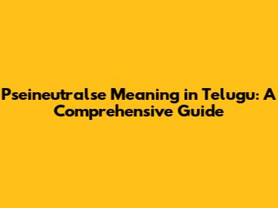 Pseineutralse Meaning In Telugu: A Comprehensive Guide