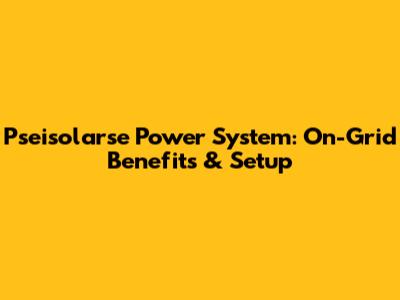 Pseisolarse Power System: On-Grid Benefits & Setup