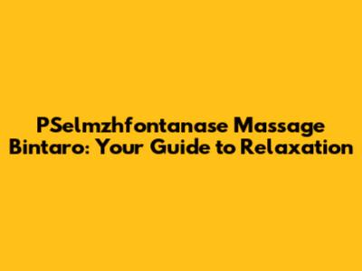 Unveiling the World of PSelmzhfontanase Massage Bintaro