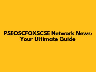 PSEOSCFOXSCSE Network News: Your Ultimate Guide