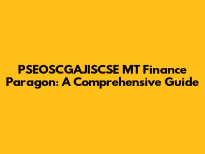 PSEOSCGAJISCSE MT Finance Paragon: A Comprehensive Guide