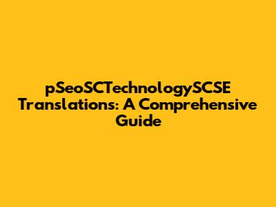 PSeoSCTechnologySCSE Translations: A Comprehensive Guide