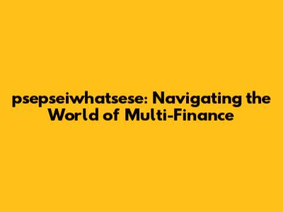 Psepseiwhatsese: Your Gateway To Multi-Finance Solutions