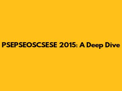 PSEPSEOSCSESE 2015: A Comprehensive Overview