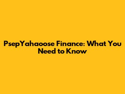 PsepYahaoose Finance: What You Need To Know