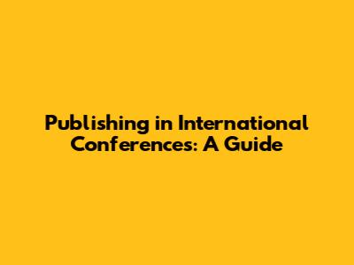 Publishing In International Conferences: A Guide