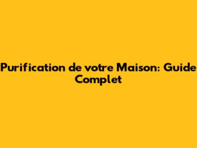 Purification De Votre Maison: Guide Complet
