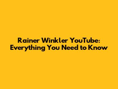 Rainer Winkler YouTube: Everything You Need To Know