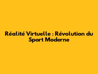 Réalité Virtuelle: Révolution Du Sport Moderne