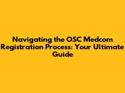 Navigating the OSC Medcom Registration Process: Your Ultimate Guide