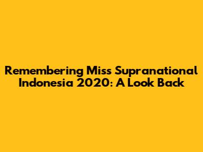 Hey everyone, let's take a trip down memory lane, shall we? I'm talking about Miss Supranational Indonesia 2020! It was a year filled with glitz, glamour, and some seriously amazing women. Let's dive into what made this competition so special, the incredible contestants, and the lasting impact it had on the world of beauty pageants in Indonesia.