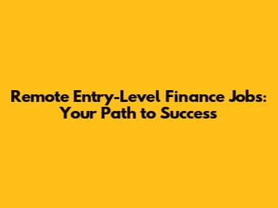 Remote Entry-Level Finance Jobs: Your Path To Success