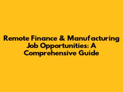 Remote Finance & Manufacturing Job Opportunities