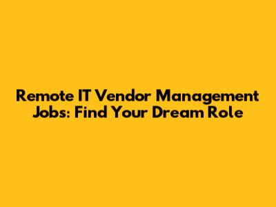 Remote IT Vendor Management Jobs: Find Your Dream Role