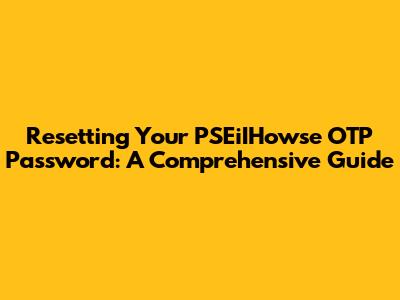 Reset PSEiIHowse OTP Password: A Simple Guide