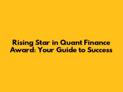Rising Star In Quant Finance Award: Your Guide To Success