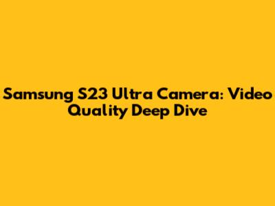 Samsung S23 Ultra Camera: Video Quality Deep Dive