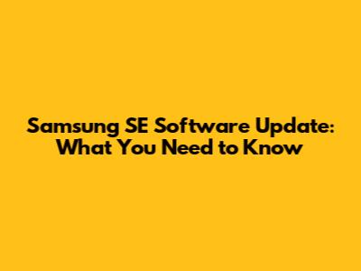 Samsung SE Software Update: What You Need To Know