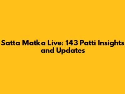 Satta Matka Live: 143 Patti Insights And Updates