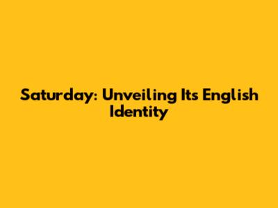 Saturday: Unlocking Its English Identity
