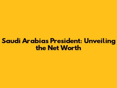Saudi Arabia's President: Unveiling The Net Worth