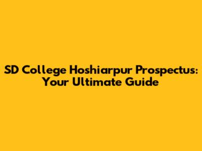 SD College Hoshiarpur Prospectus: Everything You Need To Know