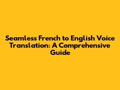 Seamless French To English Voice Translation: A Comprehensive Guide