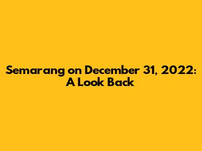 Semarang On December 31, 2022: A Look Back