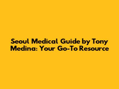 Seoul Medical Guide By Tony Medina: Your Go-To Resource