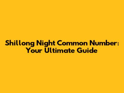 Shillong Night Common Number: Your Guide