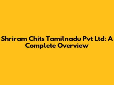 Shriram Chits Tamilnadu Pvt Ltd: A Complete Overview
