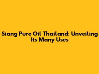 Siang Pure Oil Thailand: Benefits And Uses Explained