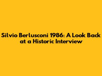 Silvio Berlusconi 1986: A Look Back At A Historic Interview