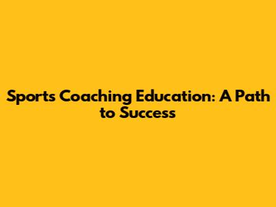 Sports Coaching Education: A Path To Success