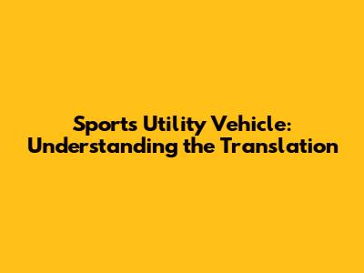 Sports Utility Vehicle: Understanding The Translation