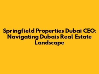 Springfield Properties Dubai: CEO Insights & Real Estate Trends