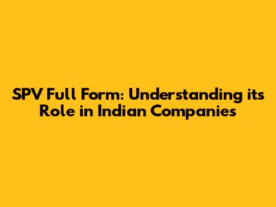 SPV Full Form: Understanding Its Role In Indian Companies
