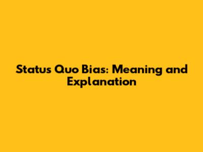 Status Quo Bias: Meaning And Explanation