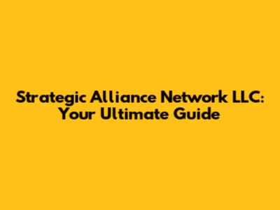 Strategic Alliance Network LLC: Your Ultimate Guide