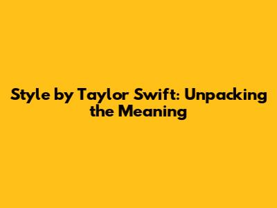 Style By Taylor Swift: Unpacking The Meaning