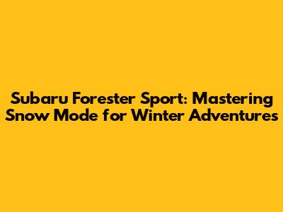 Subaru Forester Sport: Snow Mode Guide