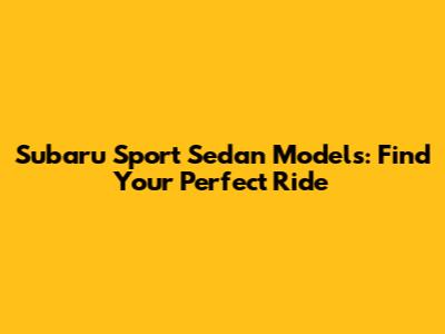 Subaru Sport Sedan Models: Find Your Perfect Ride