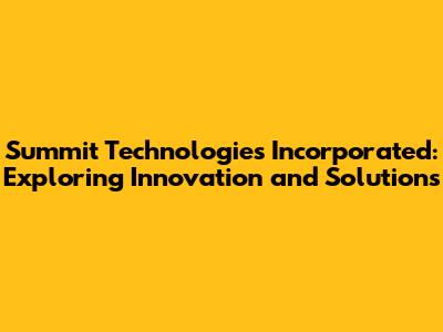 Summit Technologies: Innovations & Solutions Explored