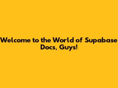 Welcome to the World of Supabase Docs, Guys!