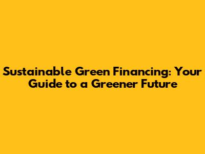 Sustainable Green Financing: Your Guide To A Greener Future
